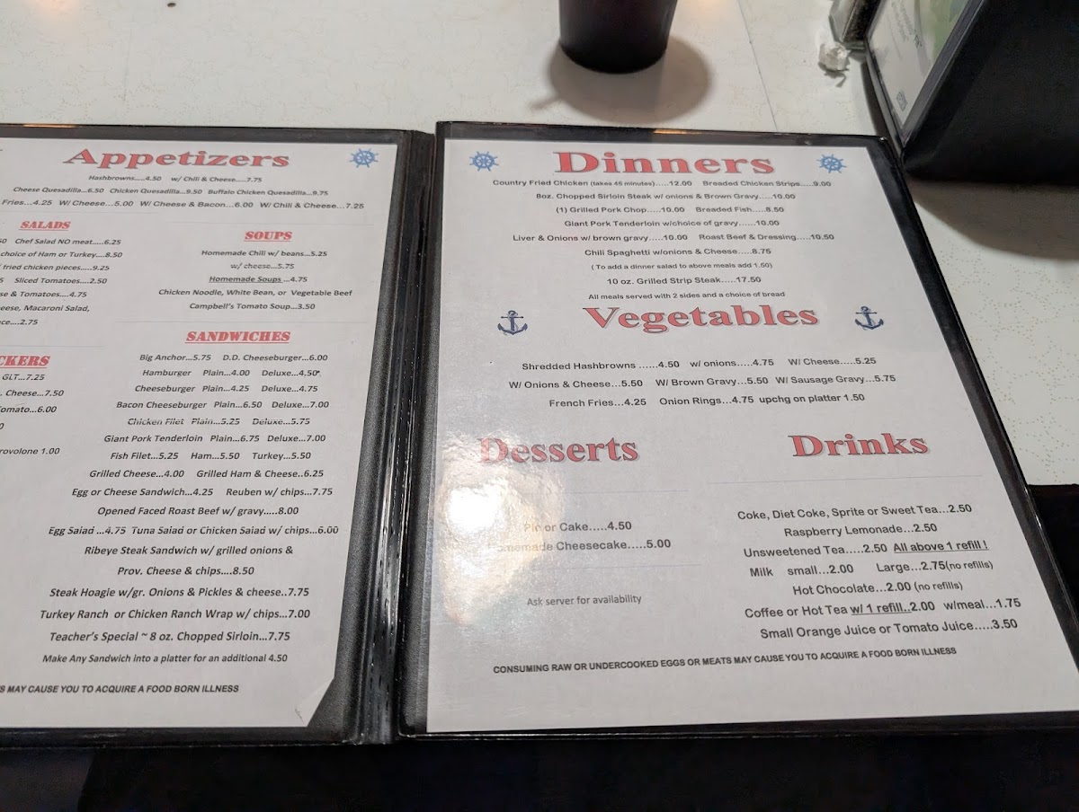 The breakfast section is particularly noteworthy, featuring mouthwatering omelettes and the ever-popular biscuits and gravy. Reviewers praise the generous portions and the homey taste of each dish, stating it feels like a warm hug from mom. If you’re in search of a cozy atmosphere served by friendly staff, Anchor Grill is your go-to destination for comfort food done right!